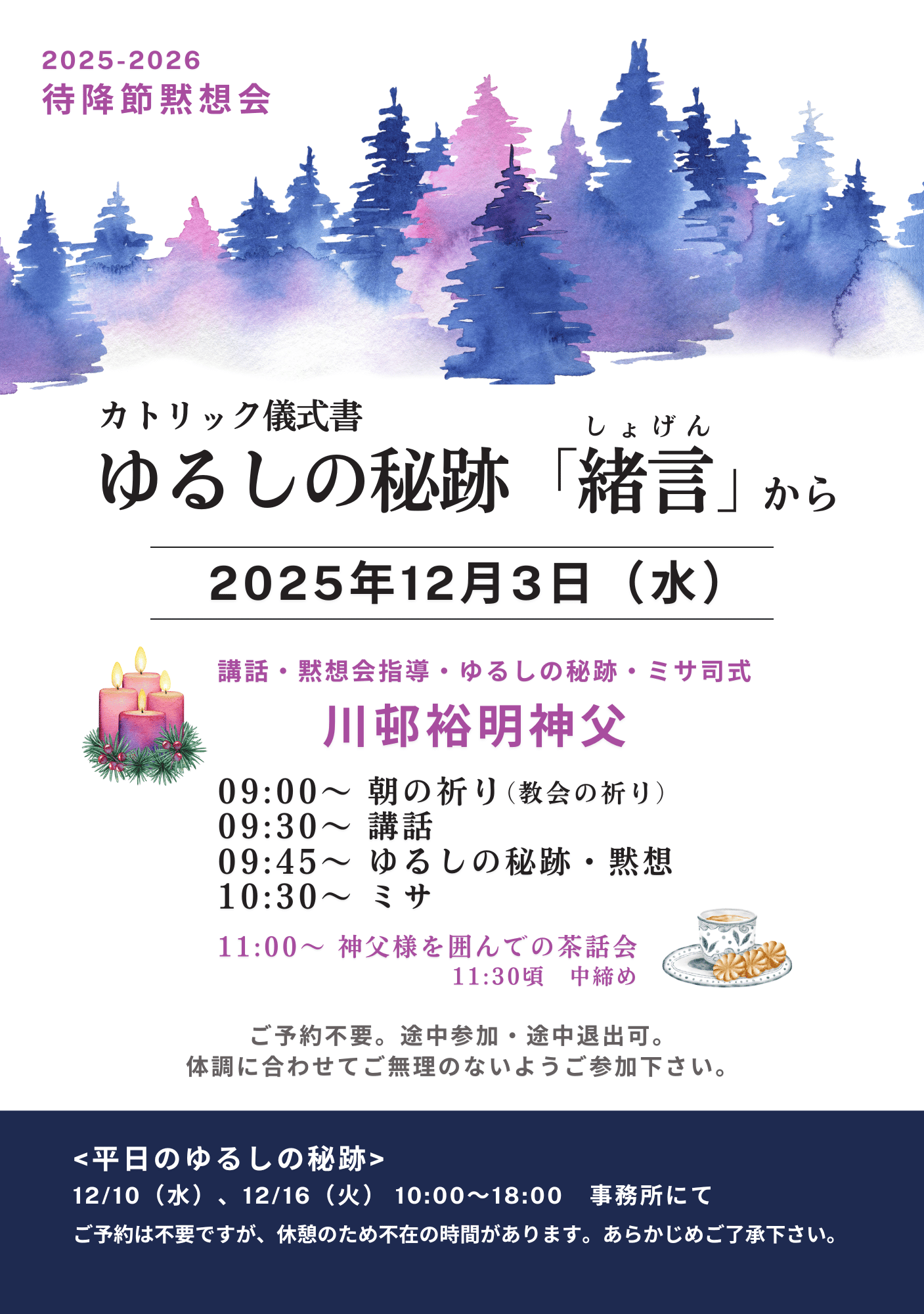 待降節「黙想会」「ゆるしの秘跡」のご案内